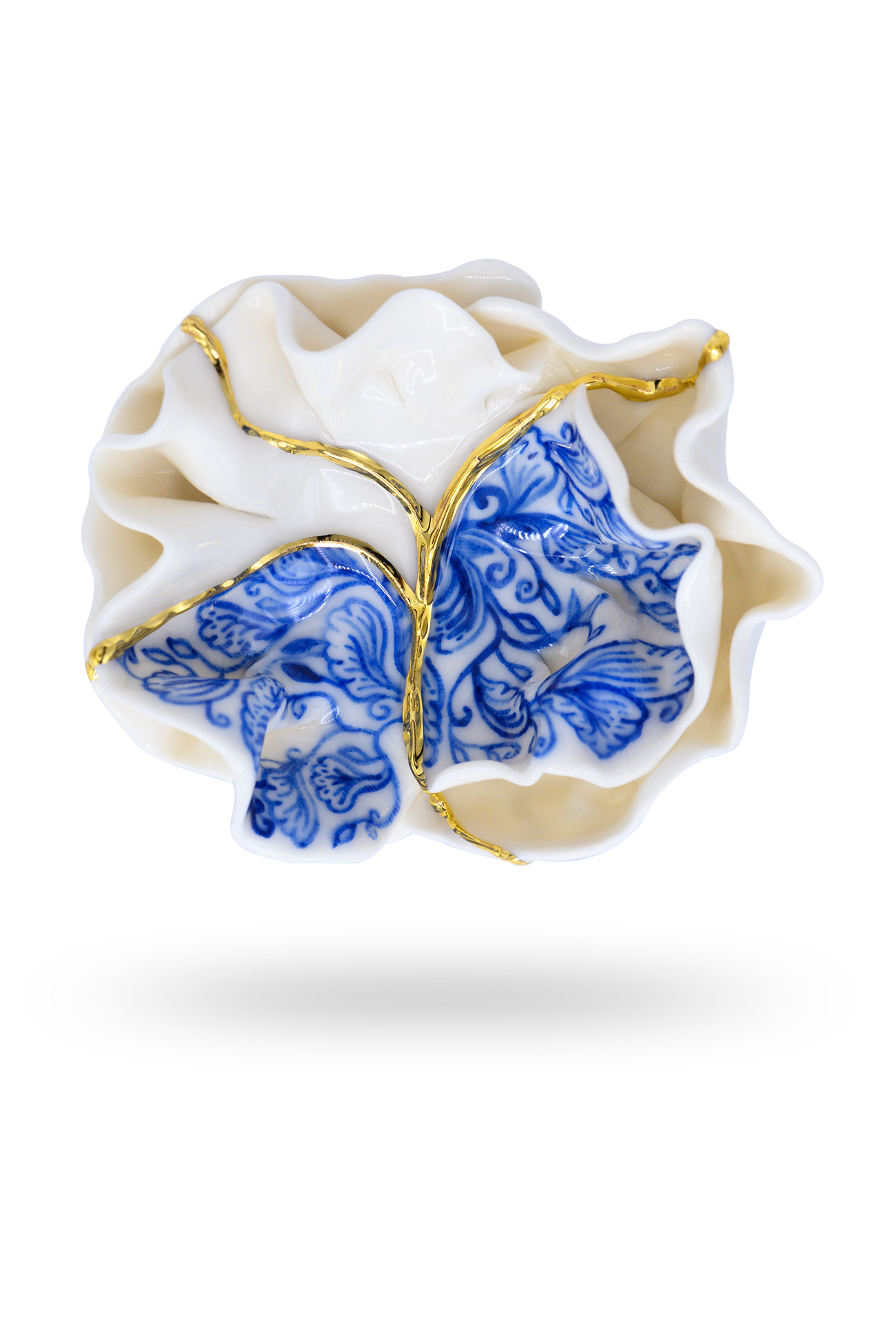 Broche floral de porcelana pintado a mano, una pieza única creada en nuestro taller. Moldeado con cuidado y detallado con oro de 24 quilates, este broche elegante captura la delicadeza de la naturaleza en un accesorio atemporal, ideal para conjuntos femeninos y sofisticados.