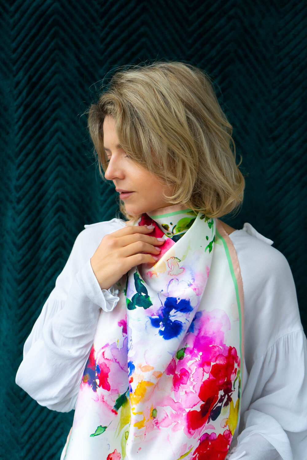Guarde la bufanda en un lugar fresco y seco. Utilice la plancha con una capa textil encima en modo mínimo. Limpie con productos químicos para conservar la belleza de su bufanda durante más tiempo. Evite la pulverización directa de perfume u otros productos químicos.